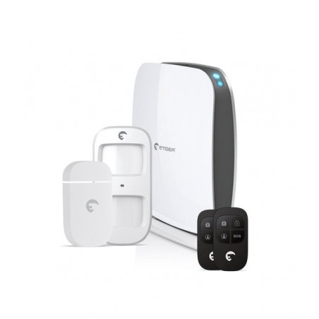 Het eTIGER ESB-WS2A WiFi draadloze alarmsysteem heeft als extra back-up een SIM-kaart zodat uw huis ook beveiligd is als de WiFi verbinding wegvalt. Deze starter kit wordt geleverd met een huisdier-proof bewegingsmelder, een raam/deur magneet contact en 2 afstandsbedieningen. Geen paneel met pincode meer in de entree van je woning. De secual box kan worden bevestigd op iedere gewenste plaats, bijvoorbeeld in de meterkast. Je bedient het systeem volledig met je smartphone. Aan- en uitschakelen kan ook met de meegeleverde afstandsbediening. Het systeem is uit te breiden met alle beschikbare eTIGER accessoires zoals extra bewegingsmelders, sirenes en rookmelders, tot wel 100 stuks in totaal. De eTIGER Secual box starter kit is jouw start van de volledige beveiliging van je woning of bedrijfspand. LET OP: het systeem wordt geleverd exclusief SIM kaart. Deze kun je aanschaffen bij je telecom provider.